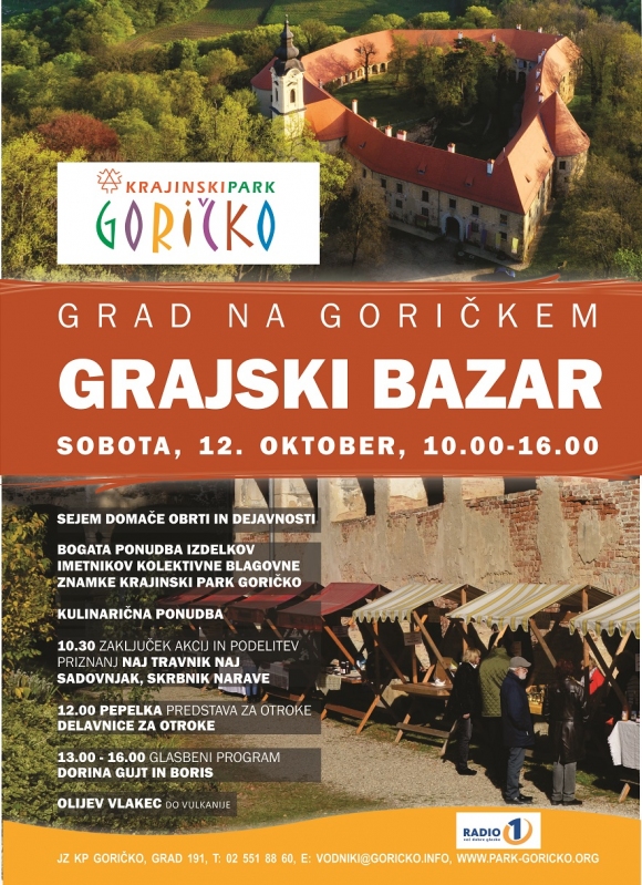 Obiskovalcem gradu bo v soboto, 12. oktobra, na več kot 20 stojnicah na voljo bogata ponudba izdelkov domače obrti in dejavnosti imetnikov kolektivne blagovne znamke Krajinski park Goričko. Sejemsko dogajanje bo dopolnila kulinarična ponudba. Od gradu do Doživljajskega parka Vulkanija bo obiskovalce vozil Olijev turistični vlakec. Na zgornjem grajskem dvorišču vabljeni na ustvarjalne delavnice.