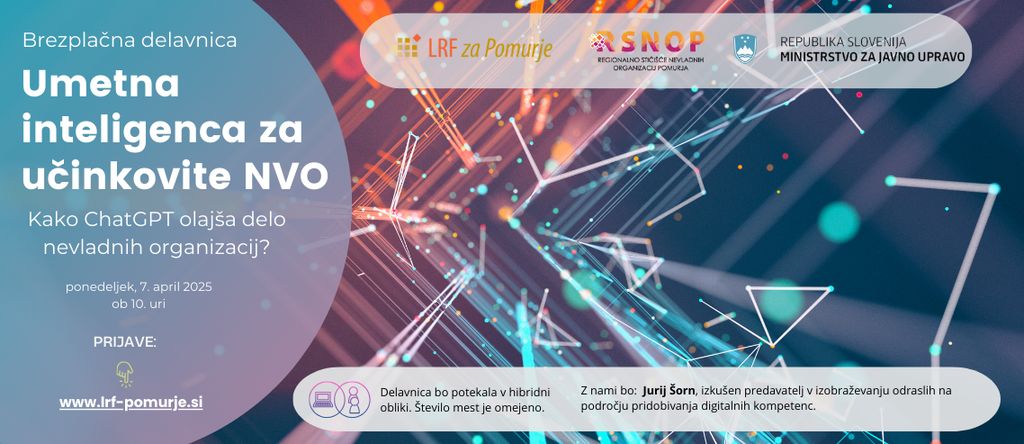 Vabljeni na praktično in interaktivno delavnico, kjer boste spoznali, kako lahko umetna inteligenca (AI) in orodje ChatGPT pomembno olajšata vaše vsakodnevno delo v nevladni organizaciji.