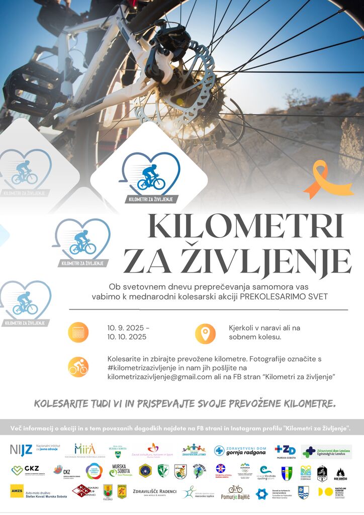 tudi letos na Nacionalnem inštitutu za javno zdravje OE Murska Sobota pripravljamo dobrodelno kolesarsko akcijo »Kilometri za življenje«, ki poteka v okviru mednarodne pobude »Prekolesarimo svet«. V lanskem letu smo skupaj prekolesarili kar 57.799 kilometra – letos pa si želimo to številko še izboljšati!