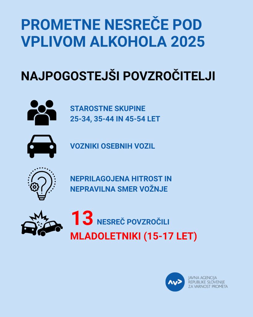 je bilo do 7. novembra že 1231 nesreč s povzročitelji pod vplivom alkohola,