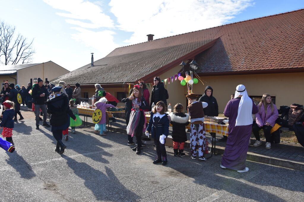 V dopoldanskem času so se namreč otroci 4. skupine Vrtca Jurček, učenci od 1. do 5. razreda OŠ Gornji Petrovci ter ostali obiskovalci družili, rajali in zganjali norčije na pustnem rajanju za vaško dvorano.