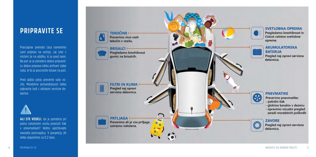 Pot dobro organizirajte in načrtujete, preverite delovanje vašega vozila, za kar lahko poskrbite s preventivnim pregledom v servisni delavnici. Preverite stanje na cestah in morebitne cestne zapore. Naredite si načrt potovanja in preverite veljavnost dokumentov.