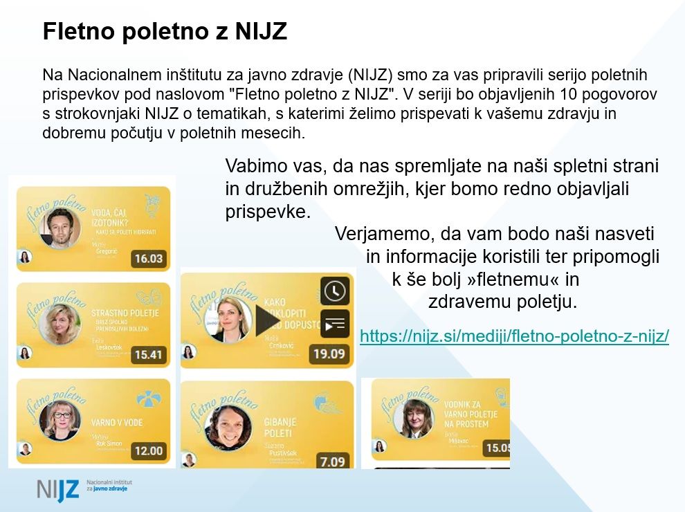 Na Nacionalnem inštitutu za javno zdravje (NIJZ) smo za vas pripravili serijo poletnih prispevkov pod naslovom "Fletno poletno z NIJZ".