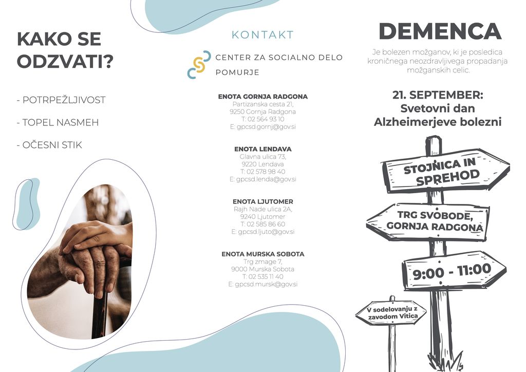 Center za socialno delo Pomurje v sodelovanju z Združenjem Spominčica organizira v mesecu septembru- mesecu Alzheimerjeve bolezni, Sprehod za spomin. S Sprehodom želimo ozaveščati o demenci in prispevati k destigmatizaciji le-te.