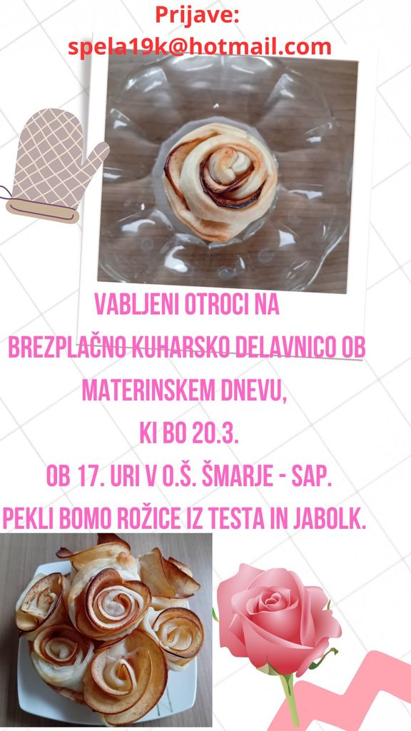Vabljeni otroci na BREZPLAČNO delavnico peke JABOLČNIH VRTNIC.