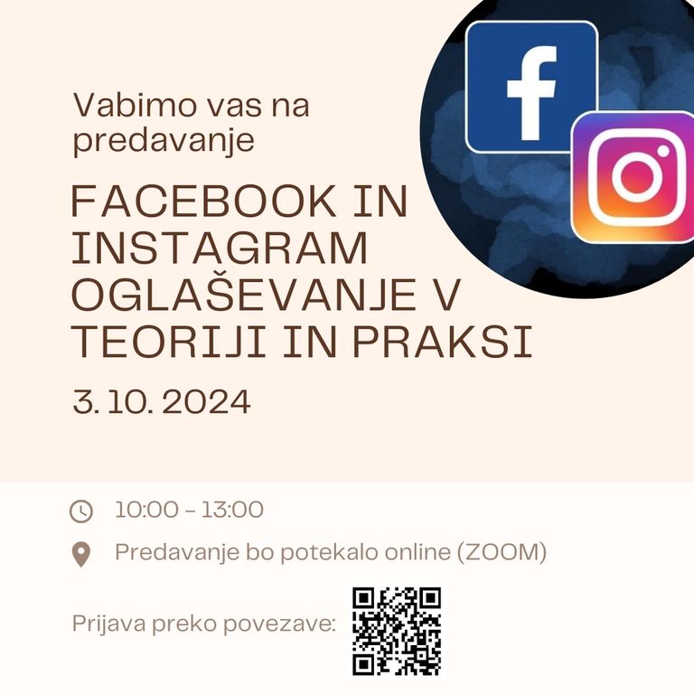 Danes si uspešne prisotnosti na družabnih omrežjih ne moremo več predstavljati brez plačljivega oglaševanja. Podjetje Meta, lastnik Facebooka, Instagrama in drugih omrežij, nam ponuja različne možnosti oglaševanja, skozi to izobraževanje pa boste spoznali, kako jih čim bolje izkoristiti in se hkrati izogniti nepotrebnemu trošenju denarja. Prvi del izobraževanja zajema pregled teorije, v drugem pa sledi praktični prikaz priprave oglaševalske kampanje. Pridobite znanje, s katerim se lahko oglaševanja lotite sami ali pa dobro izberete in sodelujete z zunanjim izvajalcem.