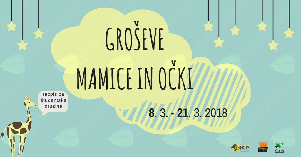 Kot je že skoraj tradicionalno v Študentskem klubu Groš tudi letos organiziramo, projekt s socialno vsebino, Groševe mamice in očke. V sklopu projekta bomo mladim študentskim družinam podelili bone za otroško trgovino v Grosupljem, popuste pri različnih lokalnih ponudnikih in nekaj praktičnih nagrad.
