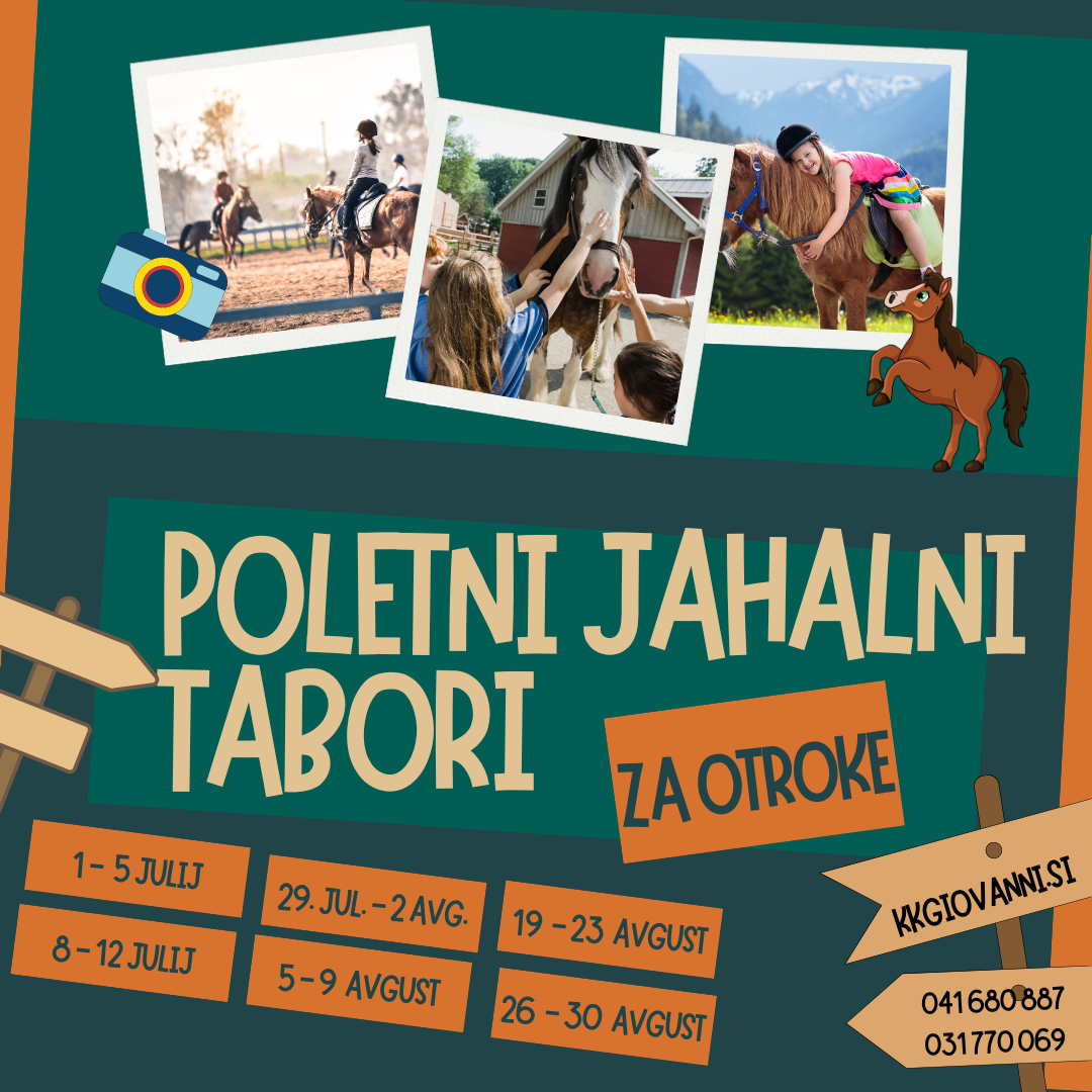 V poletnih počitnicah bomo ponovno priredili poletne jahalne tabore za otroke od 5 do 15 let. Odvijali se bodo v Konjeniškem klubu Giovanni.