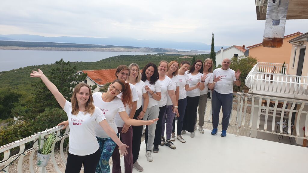 In kdo bi pozabil okuse gurmanskih specialitet naše drage Marjane, ki nas je razvajala, da smo se lahko osredinile na glasbeno duhovne priložnosti. Morda je kdo že ugotovil, kje bi nas našel, da je to ponovno Crikvenica. Maestro Fernando se ni ustrašil rahlo okrnjene zasedbe, z zaupanjem nas je mojstrsko peljal skozi vikend, da bi nas dovršeno upel v koncertnih melodijah O Salutaris Hostia, Močnikovega Angelčka in nekaj črnskih spiritualov. Oranžni alarm je svaril pred orkansko burjo z nalivom, a upam si trditi, da je naše petje med mašo in na koncertu po njej obiskovalcem cerkve sv. Antona Padovanskega umirilo in pobožalo srce. Prikladno se je spojilo z mislimi fra Vita, ki je med pridigo pomenljivo govoril o zaupanju v današnjem svetu. Po dogodku je v prostorih pavlinskega samostana še dolgo vladala četrta dimenzija, ta, ko se čas ustavi in je med nami lepo. Tam nekje ob čudovitem čaju in mandarinah iz samostanskega vrta so se ujeli obeti prihodnosti. Lepo je načrtovati, ko je energija takšna, ko je sprejetost, podpora, bližina in volja.