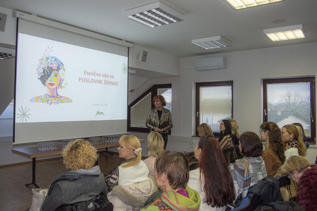 Uvodni del srečanja je bil namenjen aromaterapiji. Udeleženke so prisluhnile strokovnemu predavanju in predstavitvi izdelkov, ki je ponudila konkreten vpogled v delovanje eteričnih olj ter njihove učinke na dobro počutje, zbranost in notranje ravnovesje. Poseben poudarek je bil namenjen izzivom sodobnega poslovnega vsakdana, kot so stres, nespečnost in izgorelost, ter načinom, kako lahko aromaterapija smiselno podpira posameznike tudi v zahtevnih delovnih okoljih.