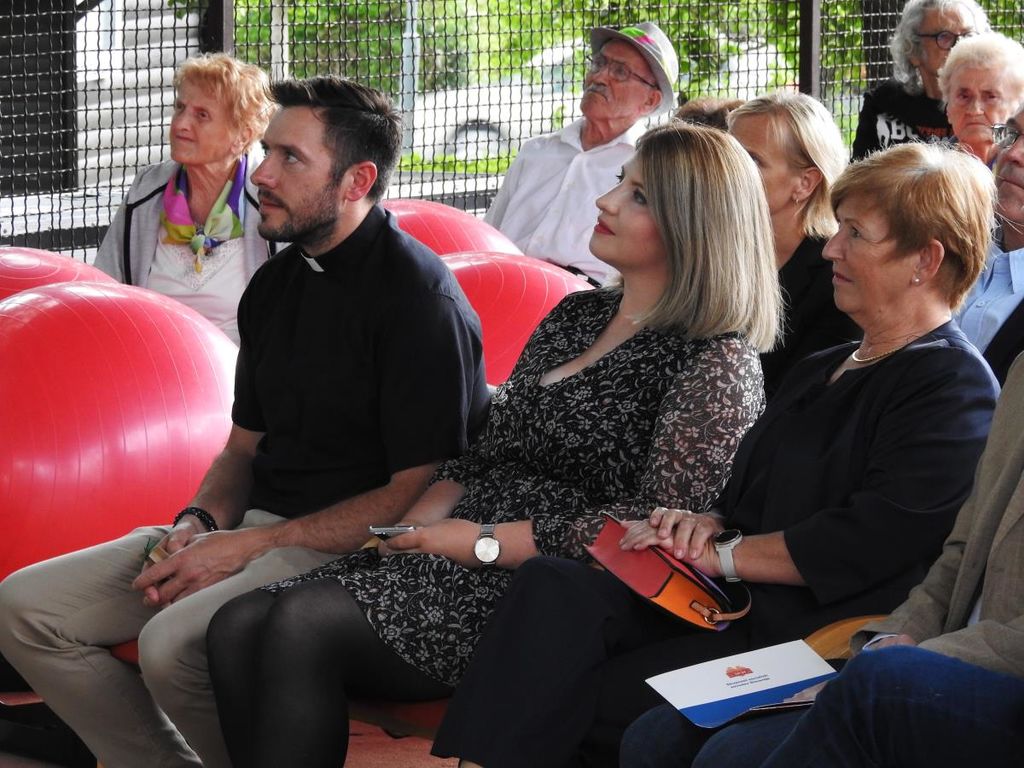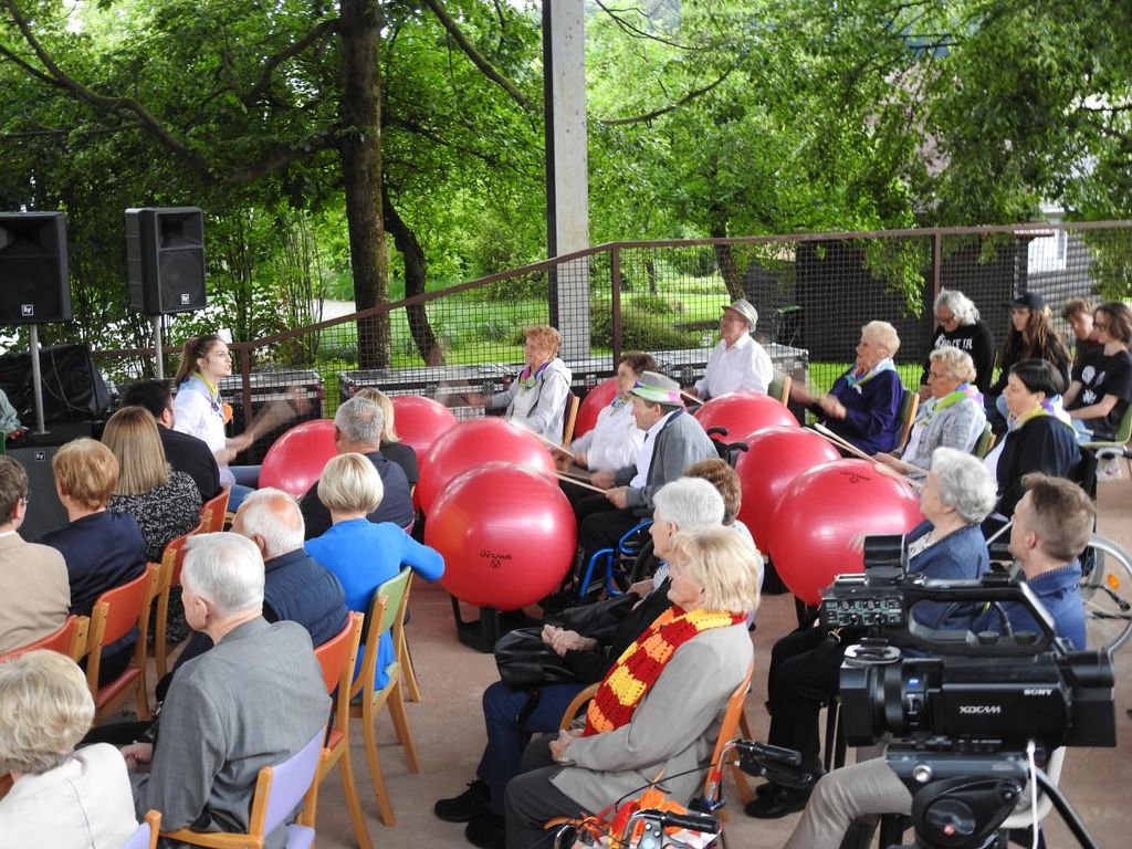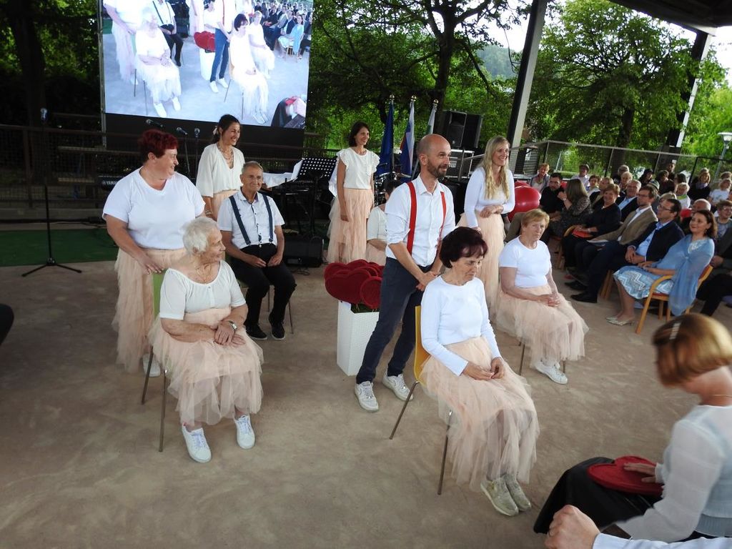 V prijetnem zavetju balinišča pred DSO Grosuplje se je zbrala množica povabljenih gostov, stanovalcev ter zaposlenih. Po ogledu videa, ki predstavlja vse službe Doma, je sledila medgeneracijska točka, dobesedno povezovalna, saj so ob izvedbi skladbe Tečejo tečejo nitke, ki jo je zapel domski zbor Zvezde, nitke volne tekle od stanovalke do otrok iz vrtca Kekec. Medtem, ko je gospa Tekavčič na odru pletla, so otroci plesali s trakovi in bili prava paša za oči.