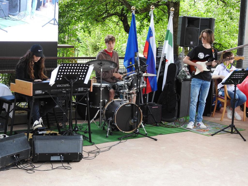 V Domu obstaja še en bend, in sicer Žogabend, ki se je predstavil z bobnanjem po velikih žogah. Vesele volje so bili, ko so na Mi ga spet žingamo, po ritmu udarjali, kot da so še mladi.