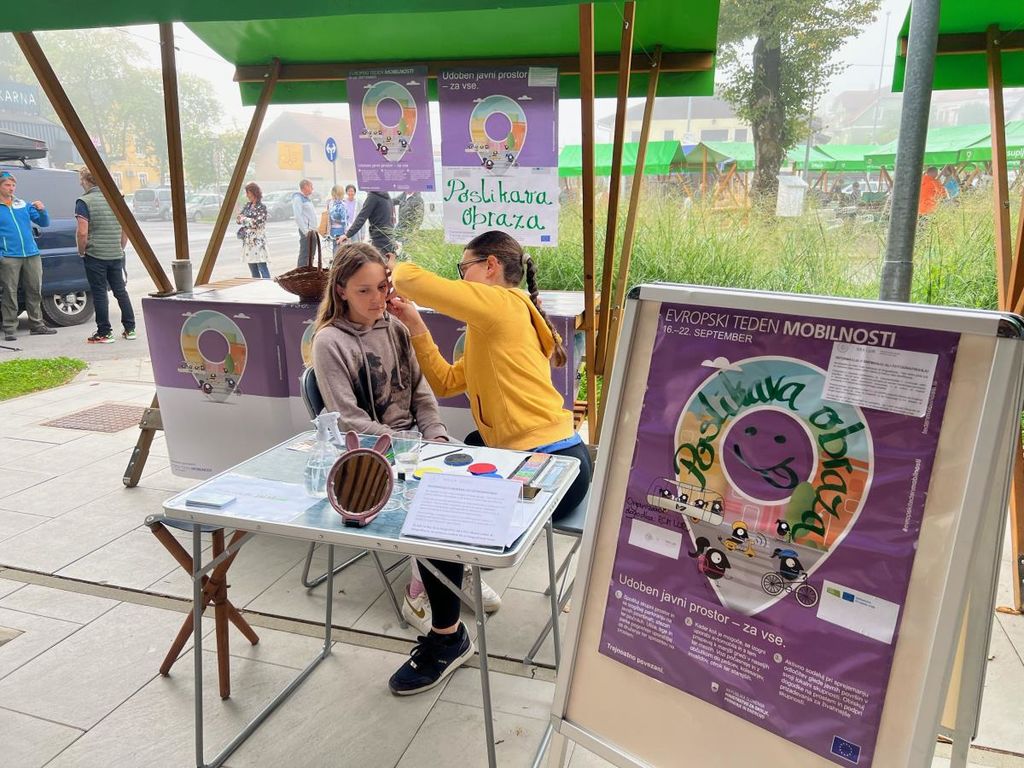 Ob sobotah našo mestno tržnico pogosto obišče tudi župan dr. Peter Verlič, v družbi svoje soproge Barbare, tokrat pa sta se ustavila tudi pri stojnici s poslikavo obraza in popravljalnici koles. Pomembno je, da se pomena trajnostne mobilnosti zavedamo skozi vse leto.