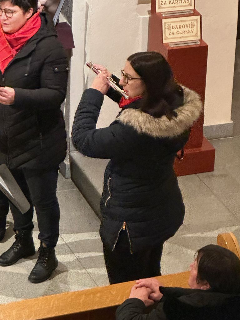 Po koncertu nas je zunaj pričakala zimska pravljica, saj je sneg že zgodaj zvečer pobelil tamkajšnjo pokrajino. Po druženju in večerji smo se zato previdno podali v dolino in proti domu.