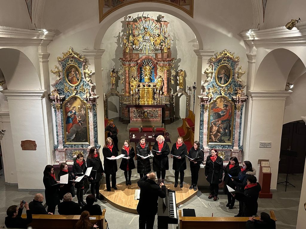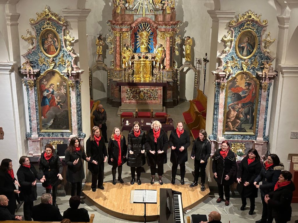 Koncert smo imeli v cerkvi sv. Jerneja s čudovito akustiko, ki nam je dala krila, da smo res dali vse od sebe in v kraj, ki sicer zborovsko ni tako razvit, prinesli nekaj novega. Zborovodja Fernando Pablo Mejías je pripravil pester program, sestavljen iz treh delov: sakralni del, izbor pomladnih pesmi tujih avtorjev ter priredbe slovenskih ljudskih pesmi, s katerimi smo se skupaj s poslušalci sprehajali po slovenskih pokrajinah – od Bele Krajine do Gorenjske, Prekmurja in celo do zamejcev v Reziji. Z igranjem na instrumente so koncert popestrile Katarina Mejías s flavto, Manca Lipovec za klavirjem ter Klara Maver z violino. Pesmi je z veznim tekstom povezovala Ana Oblak, ki je predstavila zbor, značilnosti posameznih pesmi in tudi kraje, iz katerih prihajamo.