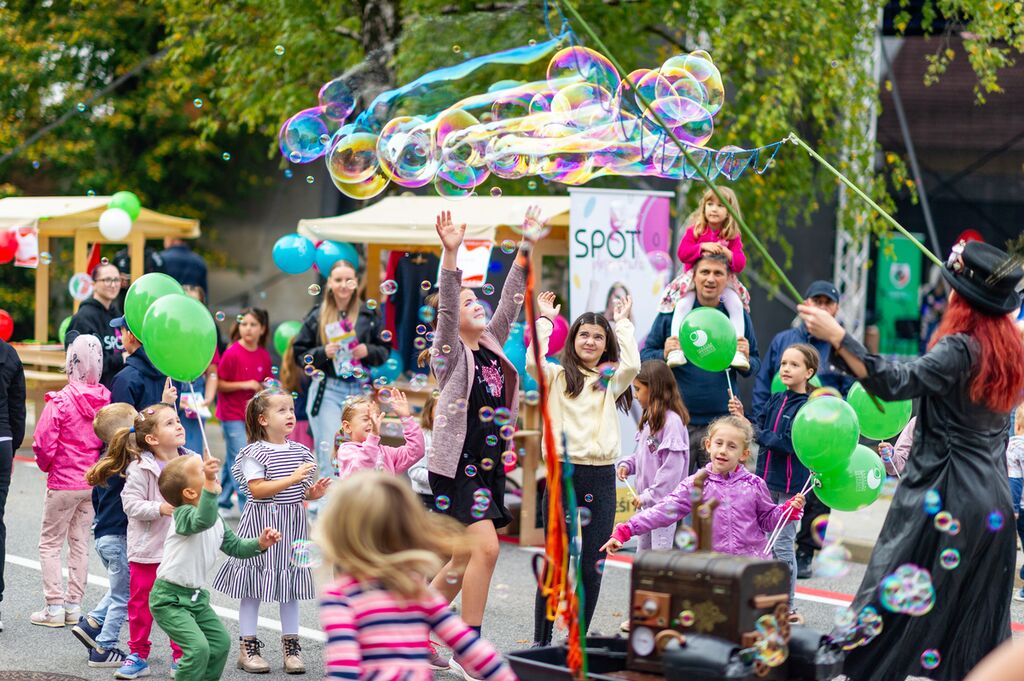 Najmlajši so lahko uživali v predstavi "Pojte drobne ptice" in se igrali z velikimi milnimi mehurčki.