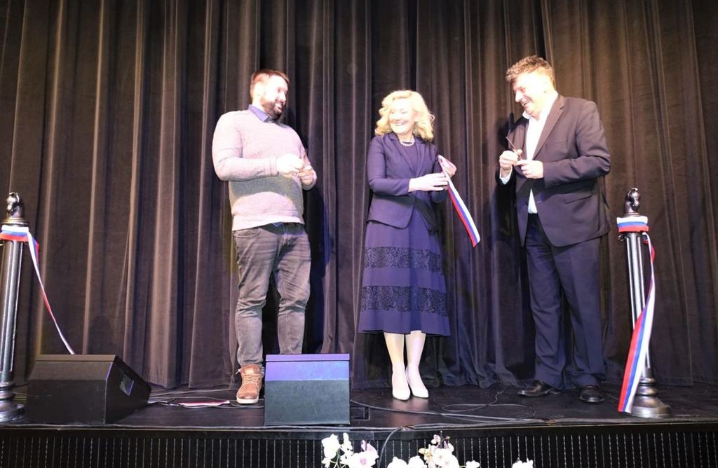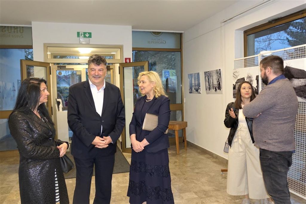 Predsedniku zveze kulturnih društev Janu Pirnatu in županu dr. Petru Verliču se je nato na odru pridružila še državna sekretarka dr. Ignacija Fridl Jarc, sledil je slovesen prerez traku, nato pa smo že zaslišali prve takte Big banda Grosuplje.