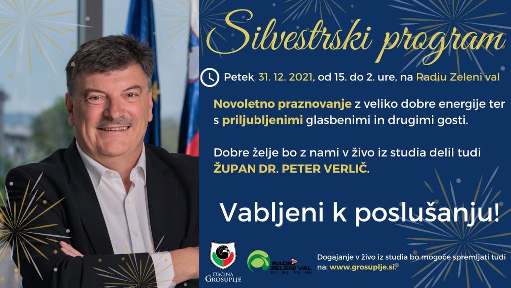 Že nekaj minut po polnoči pa se nam bo s svojim novoletnim voščilom in z dobrimi željami, tokrat preko telefonske zveze, ponovno oglasil tudi župan dr. Peter Verlič.