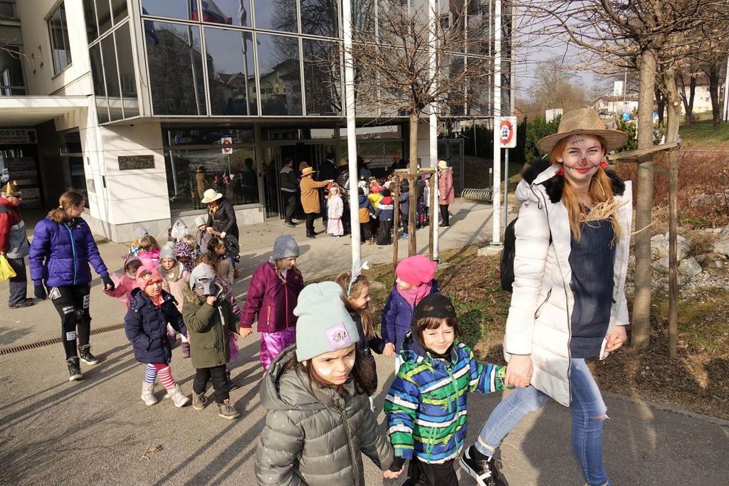»Tralala, hopsasa, pustne smo šeme,« pa »Od hiše do hiše, od vrat do vrat prinašamo smeh vam in s smehom pomlad« so se na pustni torek, 21. februarja 2023, slišale pesmice pred našo občinsko hišo. Obiskale so nas ene maškarce, pa so nas kmalu z obiskom presenetile še druge. Iz vrtcev Kekec, pa Kobacaj in Sonček. Princeske, vile, samorogi, pikapolonice, čebelice, muhe, vojaki, policaji, Pike Nogavičke, pa številni super junaki, in še bi lahko naštevali.