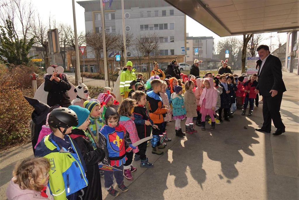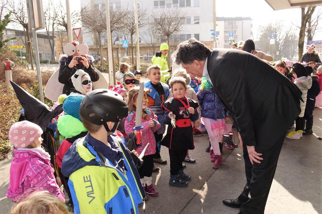 Maškarce sta pred našo občinsko hišo pozdravila tudi podžupan Janez Pintar in v.d. direktorica občinske uprave Zdenka Grozde, ki pa je maškarce razveselila s košaro bombonov. Da bo veselje v tem pustnem času za naše maškarce še večje.