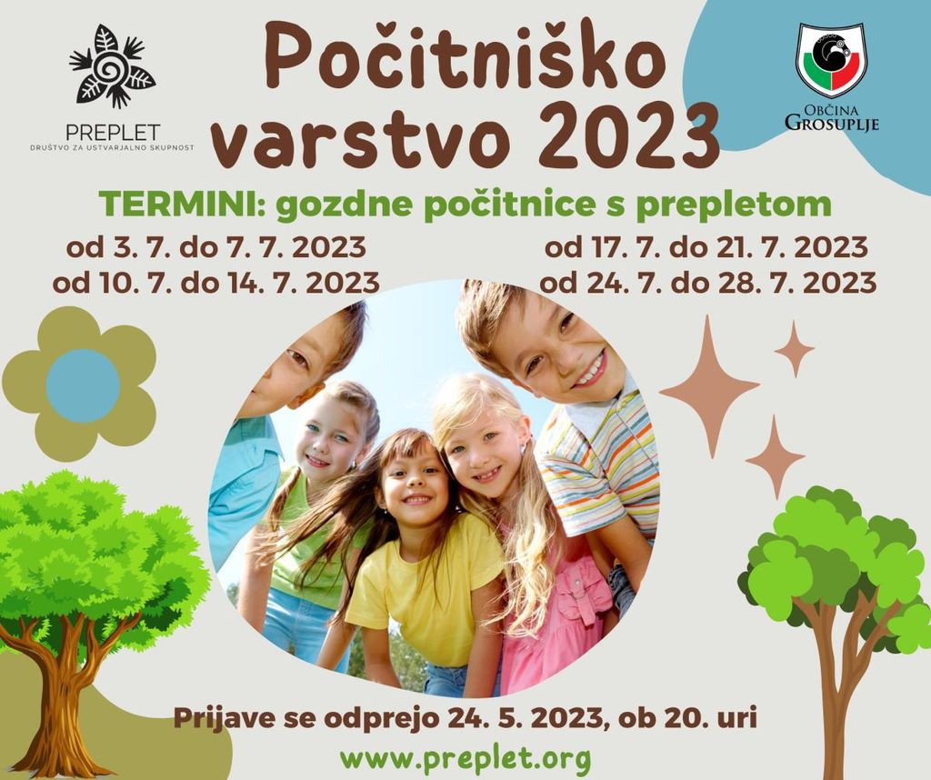 PREPLET - ekološko, socialno in kulturno društvo za ustvarjalno skupnost vabi vse otroke, stare od 5 let naprej, na gozdne počitnice. Počitnice bodo potekale v čudovitem gozdnem okolju, kjer bodo otroci lahko uživali v naravi ter se učili o njeni pomembnosti in ohranjanju.