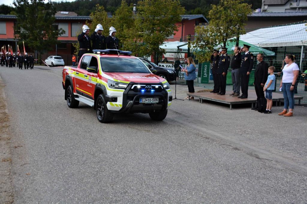 Nagovorom gostov je sledil težko pričakovani trenutek, slavnostni prevzem vozila GCGP-1. Predsednik društva Rafael Kadunc je ključe vozila izročil poveljniku društva Gašperju Remicu, ta pa jih je predal skrbniku vozila Gregorju Doljšku. Župnik Boštjan Modic je nato vozilo tudi blagoslovil.