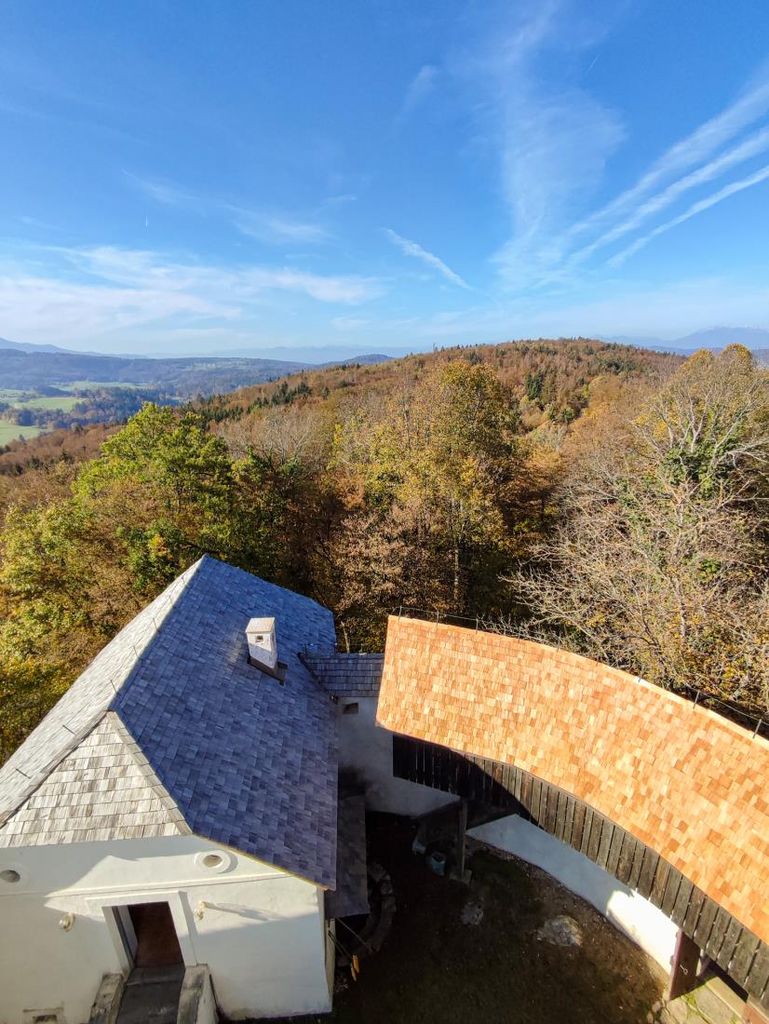 Konec oktobra je bila končana tudi zamenjava dela skodel na strehi. Skodle so iz macesnovega lesa, sekanega v zimskem času. Postopek izdelave skodel je tradicionalen. Ob pravilnem cepljenju lesna vlakna niso poškodovana in smola tvori zaščitni sloj, kar podaljša trajnost skodel. Skodle tako ob pravilni namestitvi lahko služijo več desetletij.