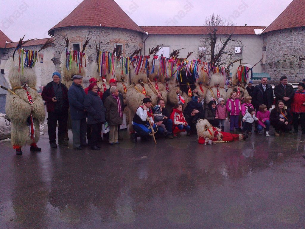 Pustne norčije so se začele. Kurenti žal niso obiskali naše občine, so se pa podali na Dolenjsko, v eno od sosednjih občin. Skupaj s spremljevalci jih je bilo za cel avtobus. Napolnili so trg pred gradom. Poskočne melodije iz zvočnikov so ob krepkem poskakovanju možakarjev pod maskami preglasili njihovi zvonci za pasom, ki so odmevali po dolini Krke navzgor in navzdol, da jih je "Zima" prav gotovo slišala tudi v naši občini.