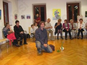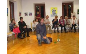 Kje gnezdijo ptice upanja? Mestna knjižnica Grosuplje je bila v četrtek, 26. 9. ob 19. uri gnezdo dogodku, ki si je postavljal to vprašanje. Zunanji del tega gnezda je bila razstava Tine Smrečnik, ki je postavila na svetlo svoje ptice iz gline, volne, kamna, železa in lesa. Notranjo mehko oblogo pa je v presenetljivem zaupanju naredilo vseh 50 udeležencev, ki je delilo svoje misli, smeh in pesmi. Vodilna ptica tega drugega dela je bil Ira Zorko.