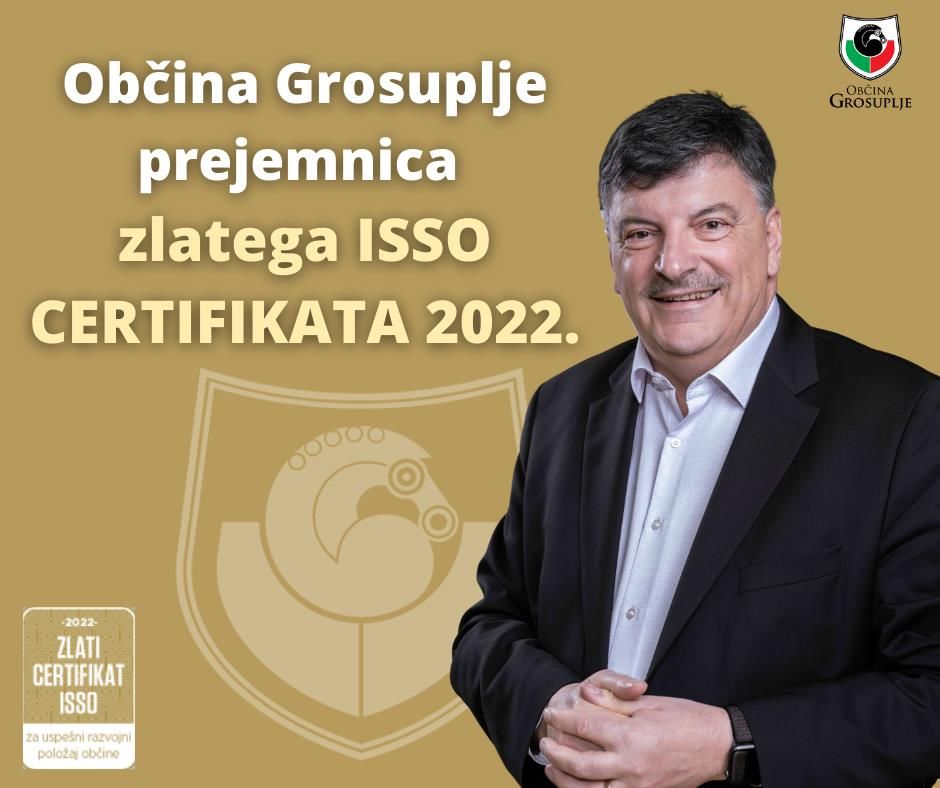 Občina Grosuplje je prejela zlati ISSO certifikat razvojne odličnosti za leto 2022, ki izkazuje izjemno kakovost življenja v občini ter uravnoteženo stopnjo razvoja. Pridobljenega certifikata smo tako izjemno veseli, potrjuje naše delo, potrjuje, da smo na pravi poti, ki ji bomo tako seveda sledili tudi v prihodnje.