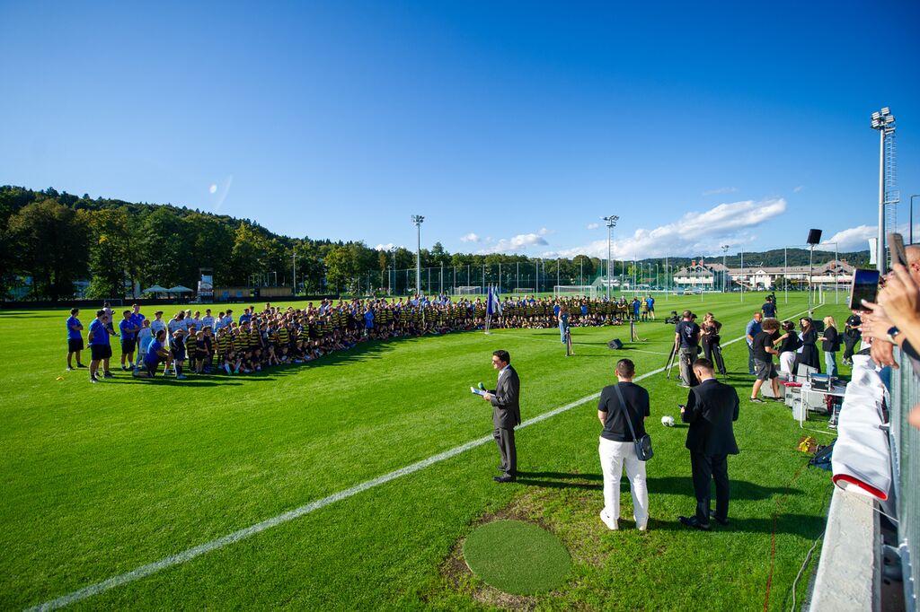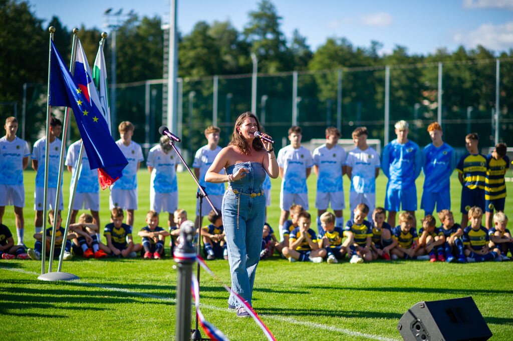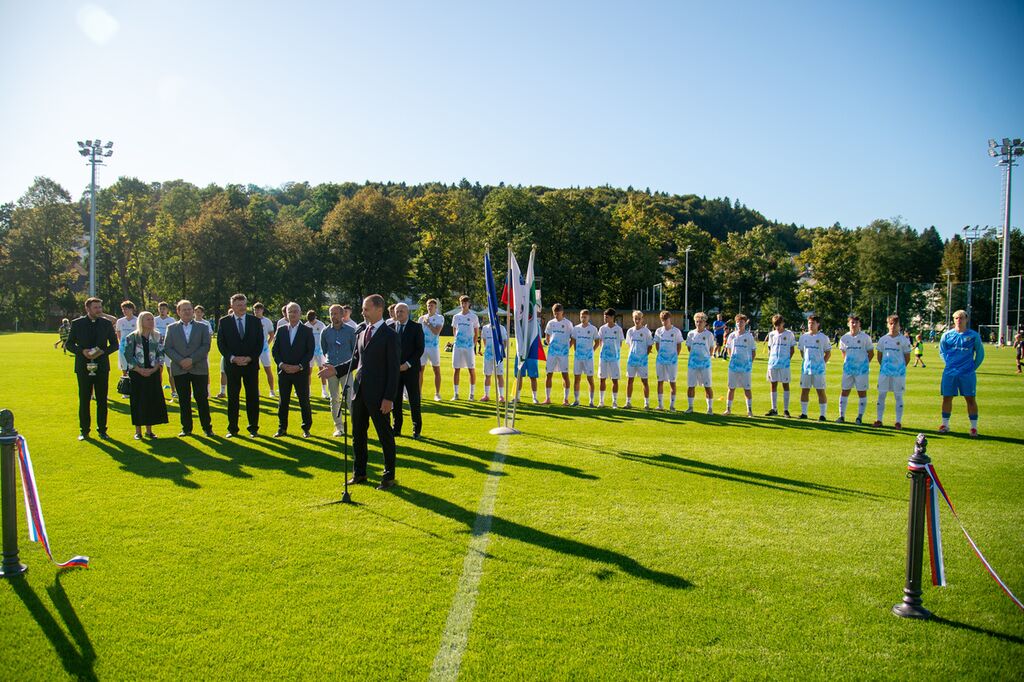 Pričetek slovesnosti sta naznanili slovenska in evropska himna ter slavnostno odkritje spominske plošče ob srcu na novi ploščadi ob zelenici v Nogometnem parku Brinje. Spominsko ploščo sta odkrila predsednik Evropske nogometne zveze Aleksander Čeferin in župan Občine Grosuplje dr. Peter Verlič.