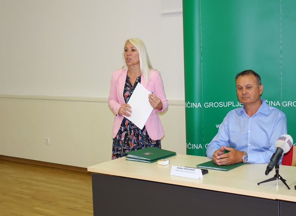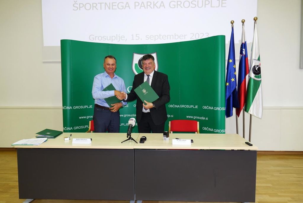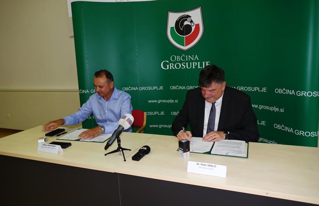Pogodbo sta podpisala župan Občine Grosuplje dr. Peter Verlič in predsednik uprave podjetja Lesnina MG oprema d.d. Boštjan Mencinger.