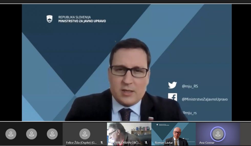 Minister za javno upravo Boštjan Koritnik je v uvodnem nagovoru poudaril, da se na ministrstvu močno zavedamo, da se kljub zdravstveni krizi življenje prebivalcev in s tem državne in lokalne uprave odvija naprej. Kljub temu, da smo se s takšno situacijo srečali prvič, smo kolikor hitro je bilo mogoče pripravili strokovne usmeritve za čim bolj nemoteno delovanje vseh ravni državne in lokalne uprave, torej za nemoteno funkcioniranja javnega servisa za državljane in občane. »Po najboljših močeh smo se trudili, da posamična navodila, pojasnila in priporočila pridejo do uporabnika, da se omogoči delovanje državnih organov, organov lokalnih skupnosti in javnih uslužbencev,« je dodal minister.