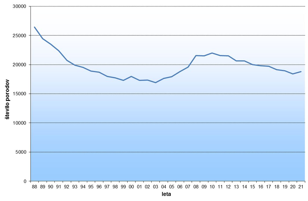 Tabela: Število porodov v slovenskih porodnišnicah, 1988 – 2021
