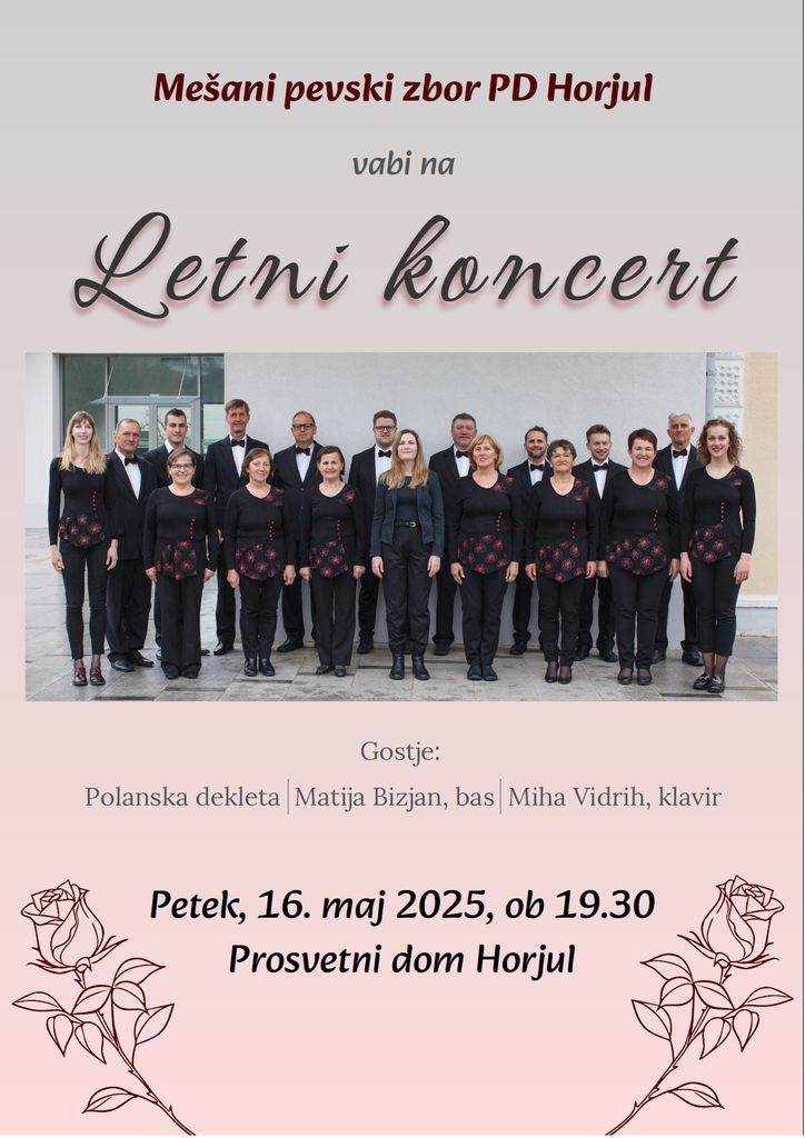 Letni koncert Mešanega pevskega zbora Prosvetnega društva Horjul bo v petek, 16. maja s pričetkom ob 19:30 uri.