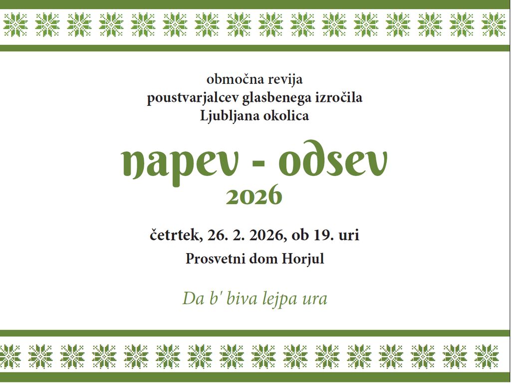 Vsi, ki si želite slišati ljudsko petje, ste lepo vabljeni na območno revijo poustvarjalcev glasbenega izročila.