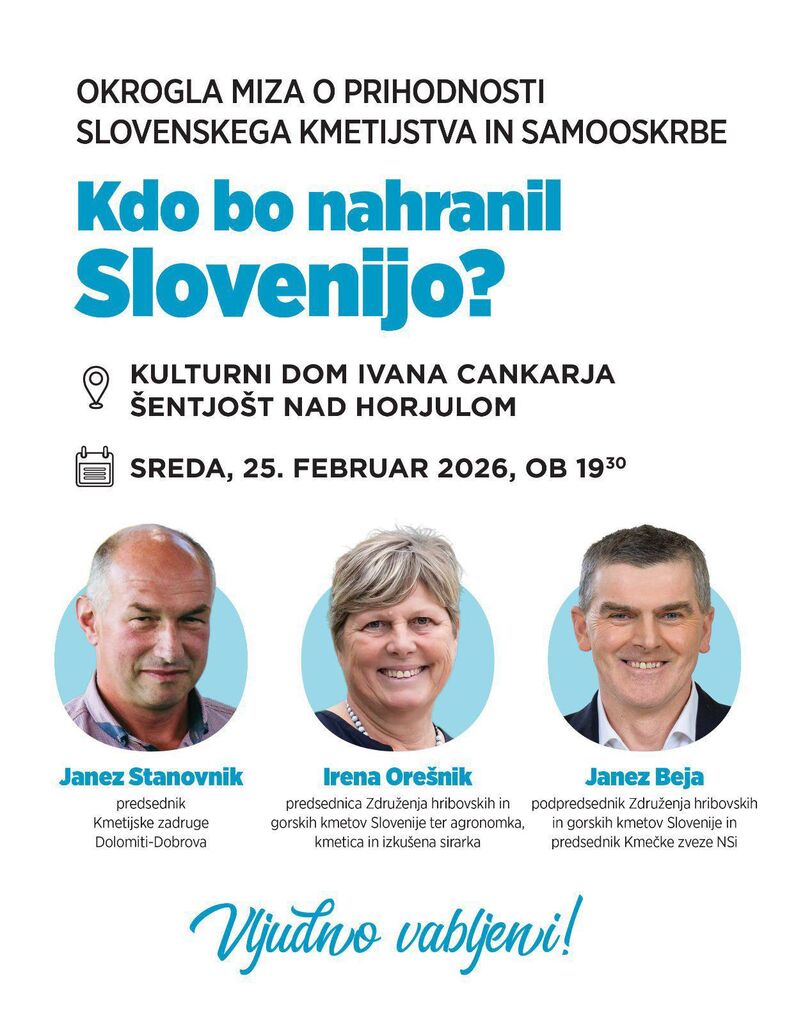 Okrogla miza o prihodnosti slovenskega kmetijstva in samooskrbe - Kdo bo nahranil Slovenijo?