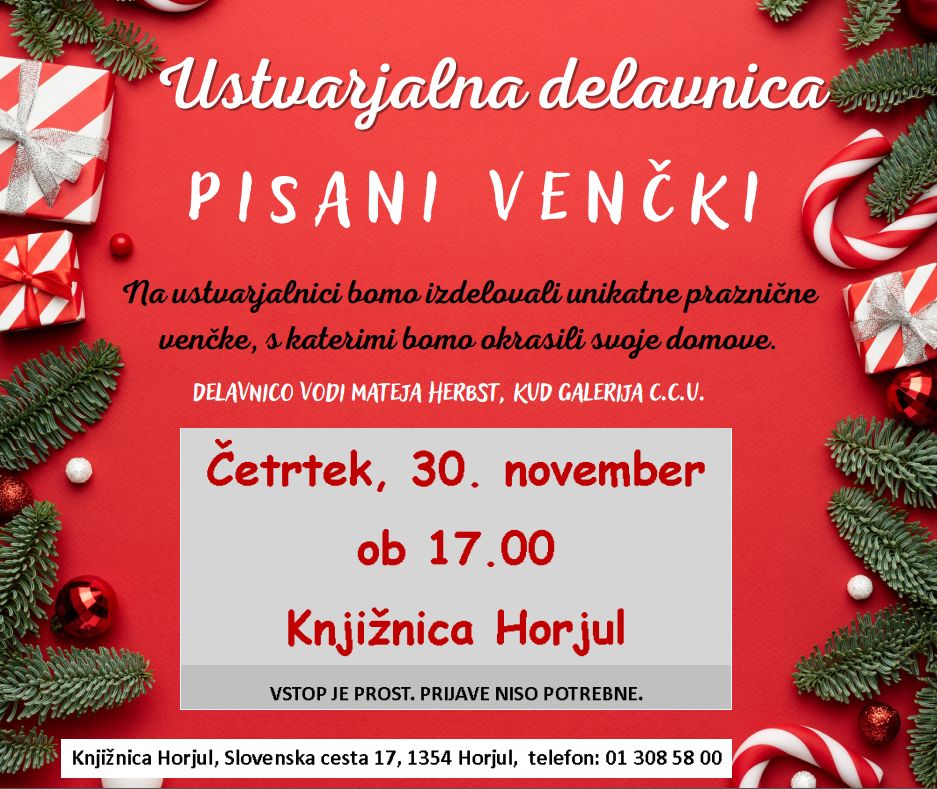 Vabimo vas na ustvarjalno delavnico prazničnih venčkov, ki bo v četrtrek, 30. novembra, ob 17. uri v Knjižnici Horjul.