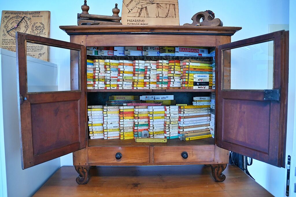 »Začelo se je nezavedno. Leta 1970 sem odprl mizarsko obrt, v kateri si mizarja brez metra težko predstavljamo. Zato jih sprva nisem nameraval zbirati – bili so preprosto vsakdanje orodje. A počasi so se začeli umikati iz naše stroke; v ospredje so stopili kovinski metri, ki zagotavljajo večjo natančnost,« pripoveduje o začetkih svoje zbirateljske poti Avguštin, ki stopa v oseminsedemdeseto leto. Tako je kakšen leseni meter po sili razmer ostal v omari ali škatli, brez misli, da bi kdaj postal del zbirke. »Nato pa se jih je nabralo že kar nekaj in zadeva je postala zanimiva. Od takrat noben, ki sem ga dobil, ni končal v smeteh.«