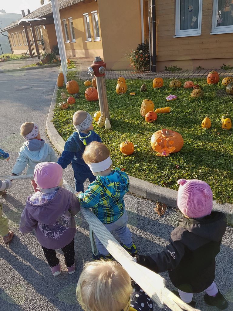Kot vsako jesen smo tudi letos v našem vrtcu popestrili jesenski čas s tradicionalno Bučijado v znamenju buč. Otroci so v vrtec prinesli velike, majhne, oranžne, zelene, enobarvne, večbarvne, bodičaste, gladke, okrasne in jedilne buče, iz katerih so nastale prave umetnine. Na delavnicah smo skupaj z otroki izrezovali, poslikavali in krasili buče iz naravnega in odpadnega materiala in nastale so čudovite podobe – od prijaznih do strašnih buč. V sredo, 18. oktobra, smo pripravili pred vrtcem razstavo – pravljično mesto iz buč, ki so si jo ob 18. uri ogledali starši z otroki in ostali obiskovalci. Ko se je stemnilo, so osvetljene buče s svečami prišle do pravega izraza, saj je vsaka buča izžarevala svojo zgodbo in obiskovalce očarala.