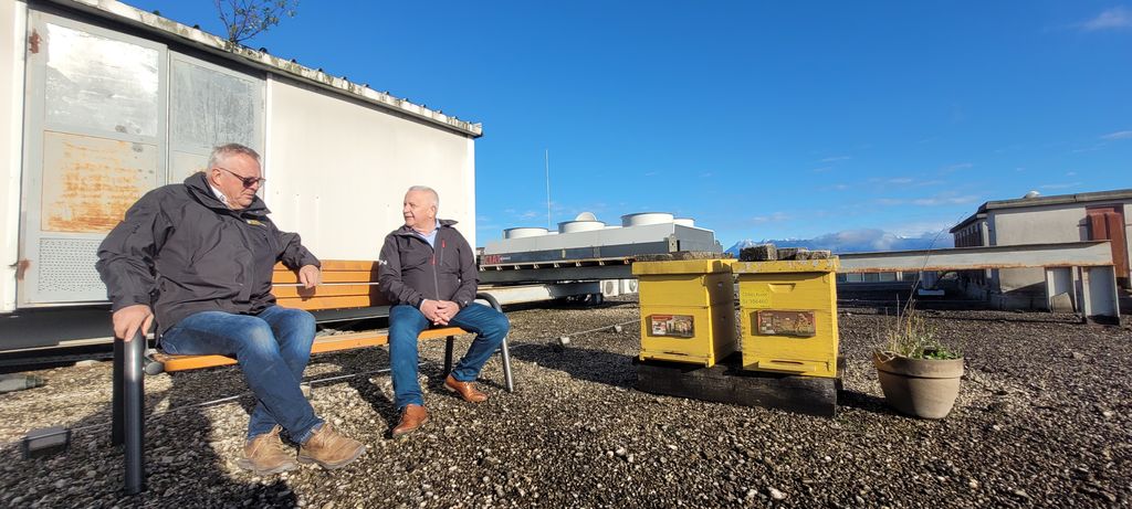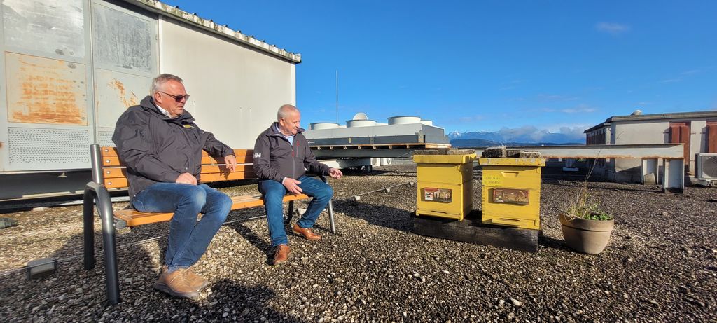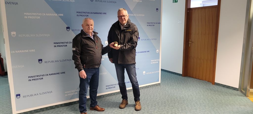 Predaja medu je potekala v prostorih ministrstva, župan Janko Prebil pa si je zatem skupaj z ministrom ogledal panja na strehi in mu pojasnil specifike urbanega čebelarjenja.
