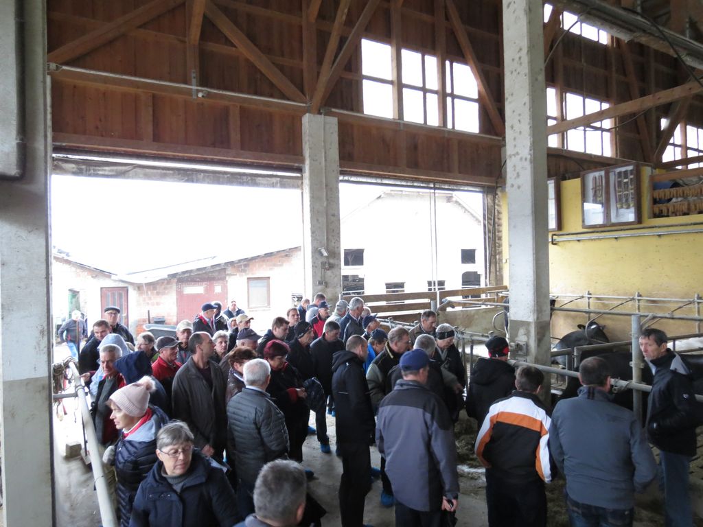 V drugi polovici dneva so si ogledali dve kmetiji, ki se ukvarjata z rejo krav molznic. Matej Vidrih: "Kmetija Frešer s Šmartnega na Pohorju redi 100 krav črno-bele pasme na južni strani hribovitega Pohorja ter prideluje krmo na 70 hektarjih kmetijskih površin. Vpeljano imajo intenzivno mlečno rejo s povprečno laktacijo kar 10.600 kg mleka na kravo. Drugo kmetijo smo si ogledali na ravnem v vasi Ložnica. Na kmetiji Hajšek redijo celo 120 krav črno-bele pasme in poleg tega še toliko mladih živali za remont. Tudi na tej kmetiji imajo vpeljano visoko intenzivno rejo živali in pridelavo krme, ki temelji tako na travniški silaži iz sejanega travinja kot tudi koruzni silaži. Na obeh kmetijah imajo vpeljan tako imenovan TMR-obrok, ki ga živalim dostavijo v krmilnem vozu. Na slednji kmetiji imajo tudi dva molzna robota in vsak ima nalogo, da pomolze med 50 in 60 krav." S strokovnimi ogledi so končali na turistični kmetiji Debelak v Lovniku pri Poljčanah. Na kmetiji so jim postregli z domačo hrano in jih navdušili z raznovrstnimi jedmi na krožniku. Sledil je še kratek ogled hleva za krave dojilje manjšega obsega (do 10 odraslih živali) in večina jih je bila mnenja, da je bilo to tisto, kar je primerno tudi za naše loge in hribe. Strokovno podporo pri obisku in vodenju po kmetijah je kmetovalcem nudil specialist za prehrano živali mag. Anton Hohler, ki prihaja iz Kmetijsko-gozdarskega zavoda Ptuj (KGZS) in zelo dobro obvlada področje krmljenja rejnih živali.