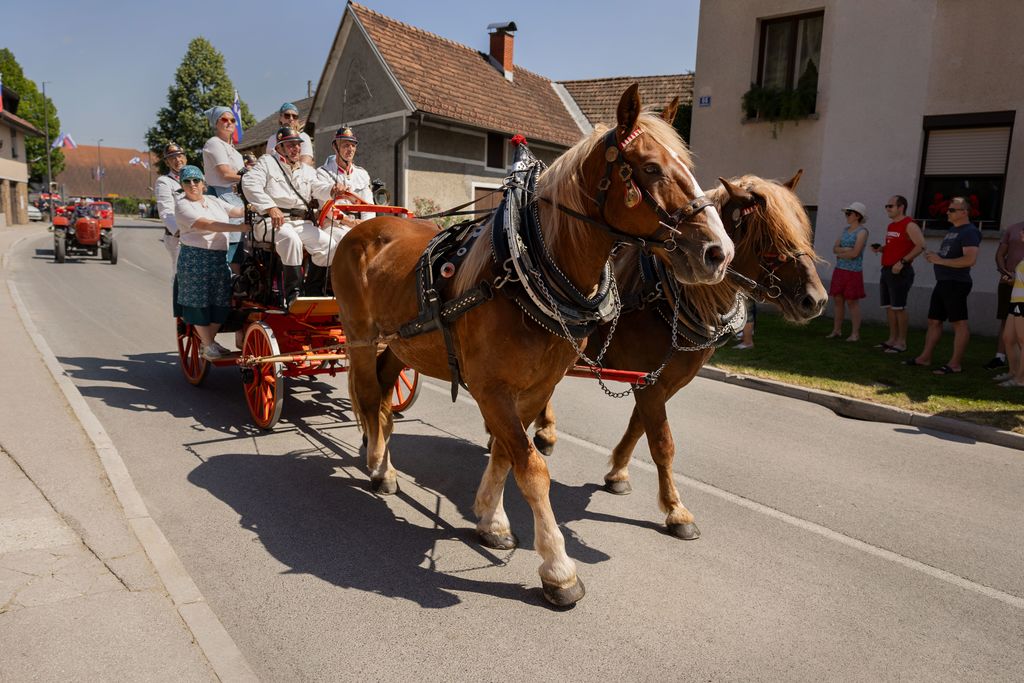 Pogled, ko so se po glavni cesti pripeljali gasilci pa je bil resnično veličasten. Povorko je začela skupina konjenikov z zastavami, sledili pa so jim v narodne noše oblečeni vaščani. Za njimi so z elegantnimi plesnimi koraki stopale mlade mažoretke, ki jim je v ritmu glasbe strumno sledil Pihalni orkester Vrhnika. Osrednji del parade so v velikih številkah sestavljali gasilci in gasilke, ki so ponosno nosili prapore. Spremljala jih je skupina konjskih vpreg, za njimi pa so se en za drugim peljala sodobnejša motorna vozila, tako da je bilo moč opaziti napredek in vse posodobitve v dolgih 140 letih. Zvrstitvi gasilcev in vaščanov pred gasilskim domom so sledili nagovori slavnostnih gostov, med drugim župan Horjula, Janko Prebil in poveljnik in predsednik Gasilske zveze Slovenije Janko Cerkvenik, ki sta izrazila svoje priznanje in hvaležnost gasilcem za njihov nesebični prispevek k varnosti in zaščiti skupnosti. Glasbeni nastop je pripravil tudi sekstet Odojek.