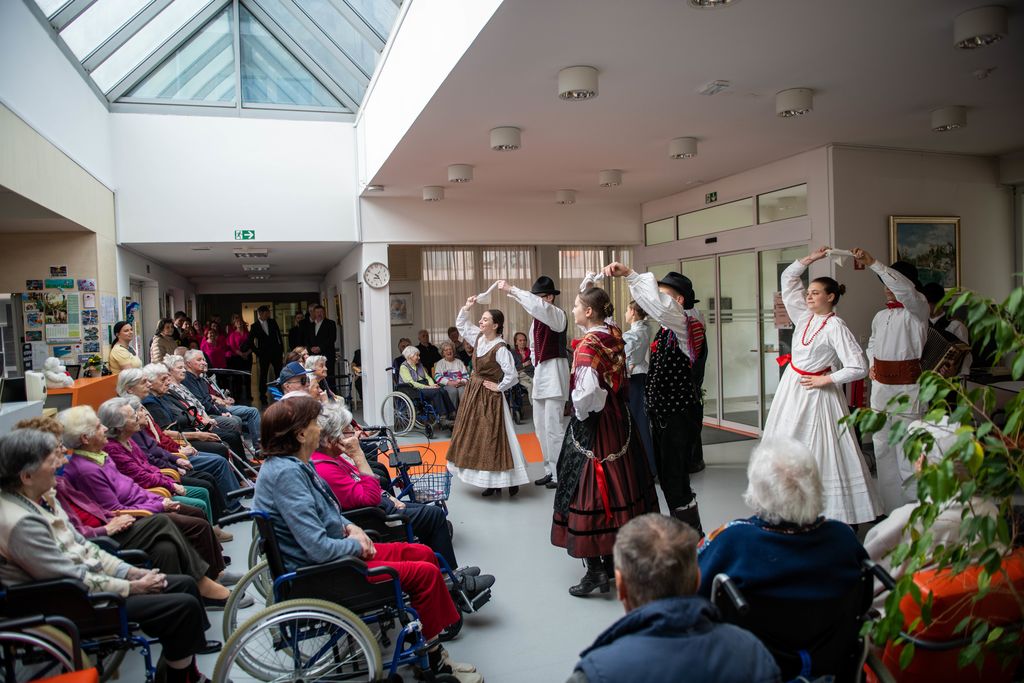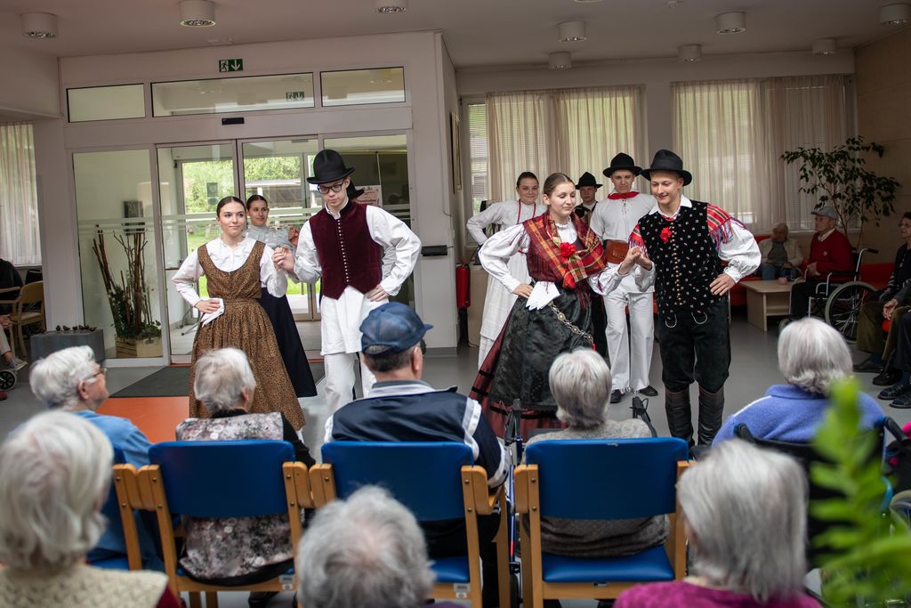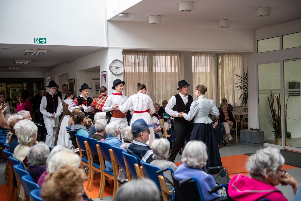Zapeli so 6 pesmi, ki so starostnike popeljale v njihovo mladost in ob tem izvabili veliko veselja in tudi kakšno solzo sreče. Za popestritev programa so zaplesali še folkloristi Folklorne skupine Klas iz Horjula in poskrbeli, da je bilo v avli doma starejših še bolj veselo.