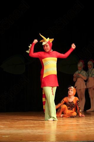 Otroci v čudovitih kostumih so s plesom uprizorili zgodbo o deklici Luni, ki se je nekoč odpravila v svet. Vanj se je podala z vlakom, s seboj pa je vzela svojo čarobno flavtico. Med potjo je spoznala obilo živali; ponija, želvo, kolibrija, delfina, zmaja ter dva tigra. Prijazna Lunica je z igranjem na čarobno flavtico uslišala želje nekaterim živalim, ki so jo zelo lepo sprejele in pokramljale z njo. Nekoč jo je tiger opomnil na neprijetnost, ki se ji lahko zgodi, in sicer, da ji lahko nadaljevanje poti prepreči zmaj. In ravno to se je zgodilo. Borila sta se in zmaj jo je odpeljal v svojo temno in mrzlo jamo, čarobno flavtico pa je vrgel na sredino globokega morja, kjer je potonila. Toda živali, ki jim je deklica na poti priskočila na pomoč, niso pozabile nanjo, ampak so ji pomagale, prišle so jo rešit. Zmaja so porinile v prepad. Medtem je kolibri rešil Luno, delfin pa je v globokem morju našel njeno čarobno flavtico. Tako se je Luna z vlakom varno pripeljala domov.