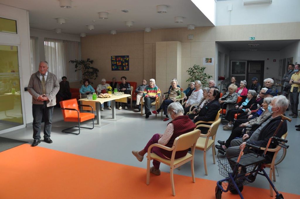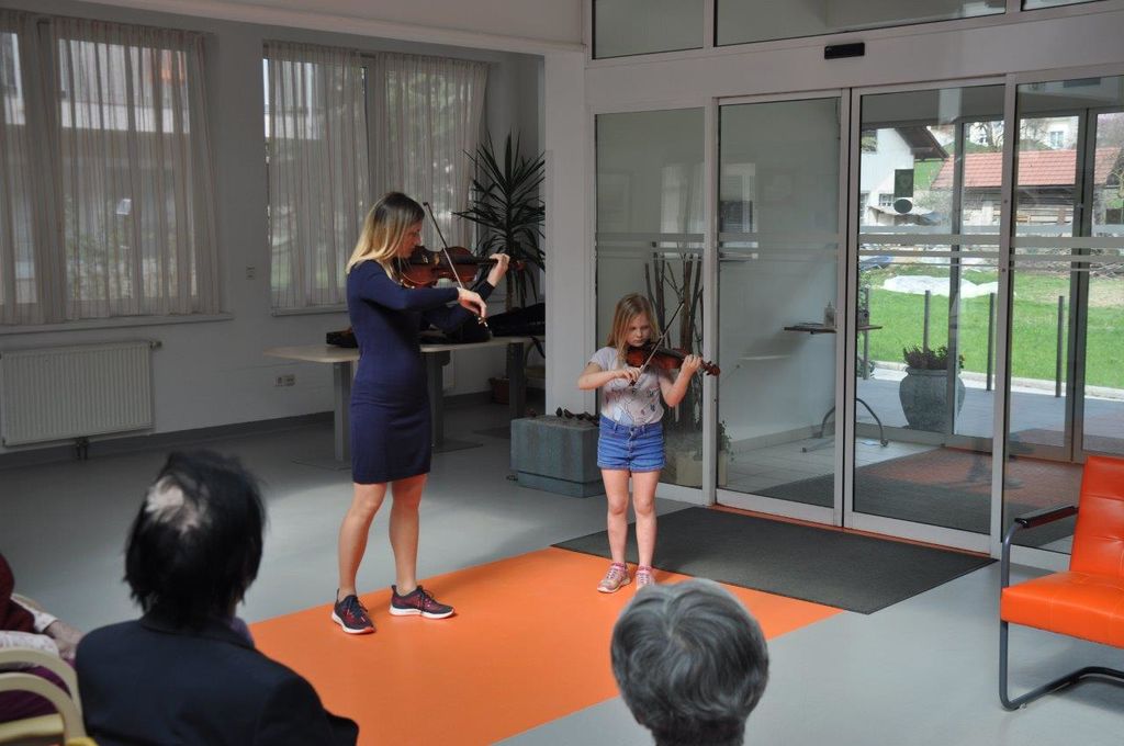 Stanovalci doma so zapeli nekaj pesmi kar skupaj s slikarjem, za obogatitev programa pa sta poskrbeli še violinistki Evita Remic, ki obiskuje 2. razred violine, in profersorica violine Neža Filipic iz glasbene šole Vrhnika, izpostava Horjul.