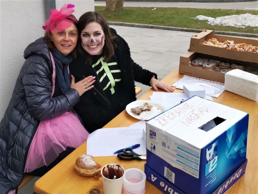 Maškare pa so se lahko okrepčale tudi na stojnici Mihe Janše, kjer so dobile vročo čokolado, čaj, tiste malo starejše pa tudi kuhano vino in pivo. Seveda niso manjkale niti palačinke in hot-dogi.