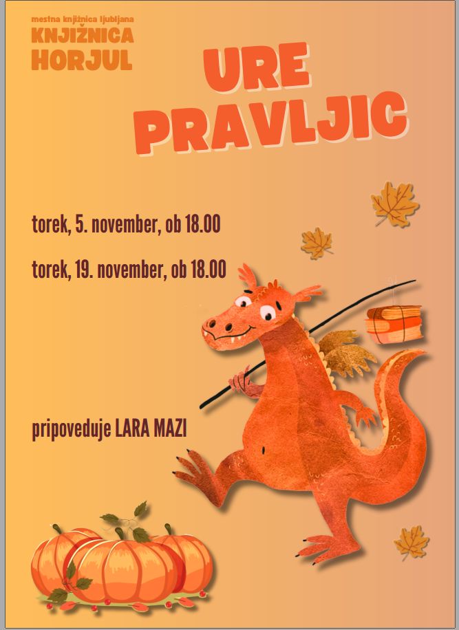 5. in 19. novembra 2024 vas ob 18. uri vabimo na uro pravljic v knjižnico Horjul. Pripovedovala bo Lara Mazi.