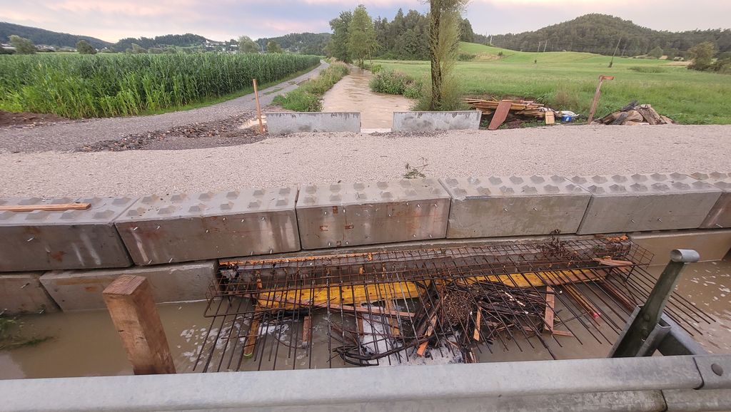 Kljub temu so dežurne ekipe redno spremljale, kaj se dogaja z najbolj problematičnimi hudourniki v občini in tudi poskrbele za hitro čiščenje zadrževalnikov, kjer je količina naplavljenega materiala že dosegala kritično mejo. Najbližje temu, da bi zaradi zamašenih zadrževalnikov voda prestopila strugo, je bilo na Vrzdencu poleg cerkve svetega Kancijana, kjer je močan naliv tudi povzročil uničenje gozdne ceste.