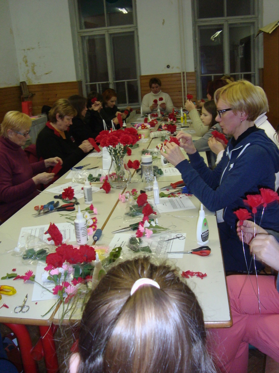 Cvetje iz papirja krasi avlo občine
